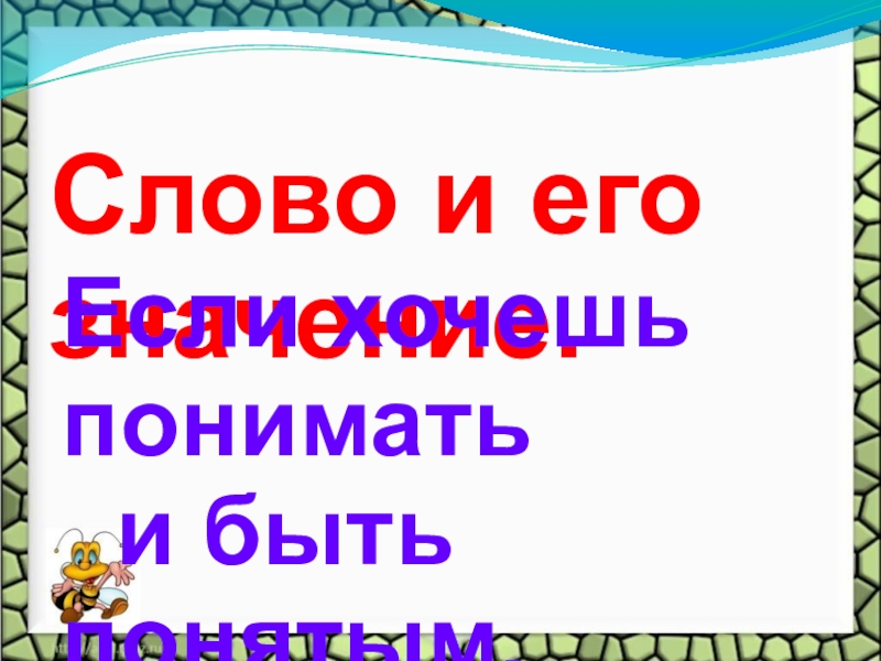 Слово и его значение.Если хочешь понимать  и быть понятым.