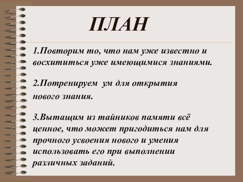 3.Вытащим из тайников памяти всё ценное, что может пригодиться нам для прочного усвоения нового и умения использовать его при выполнении различных заданий.