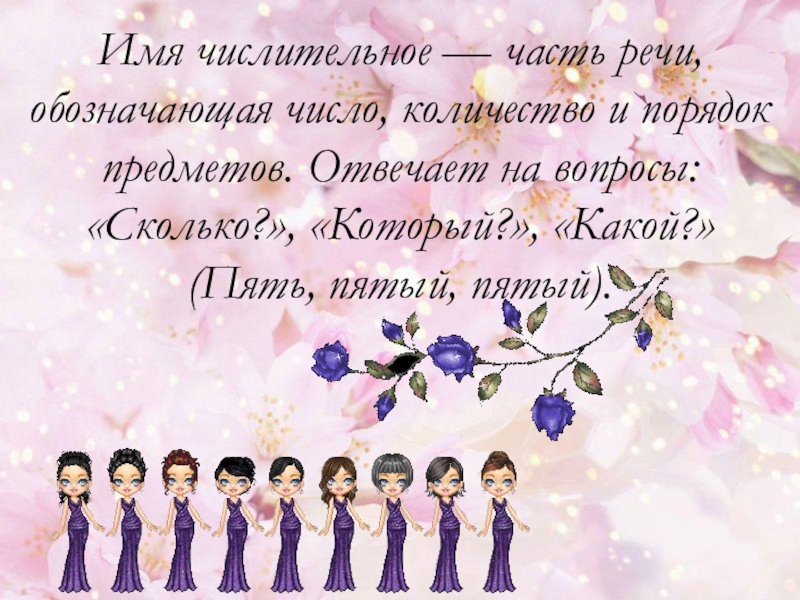 Слайд 6Имя числительное — часть речи, обозначающая число, количество и порядок предметов.