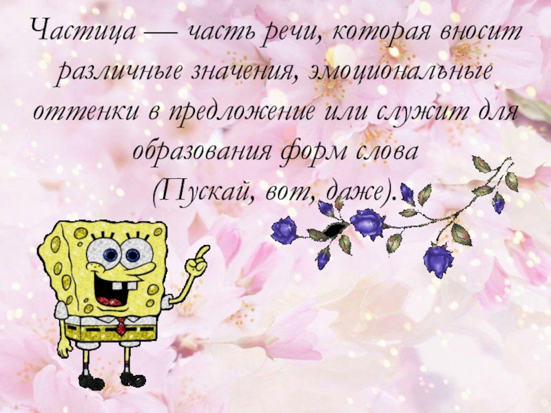 Слайд 11Частица — часть речи, которая вносит различные значения, эмоциональные оттенки в