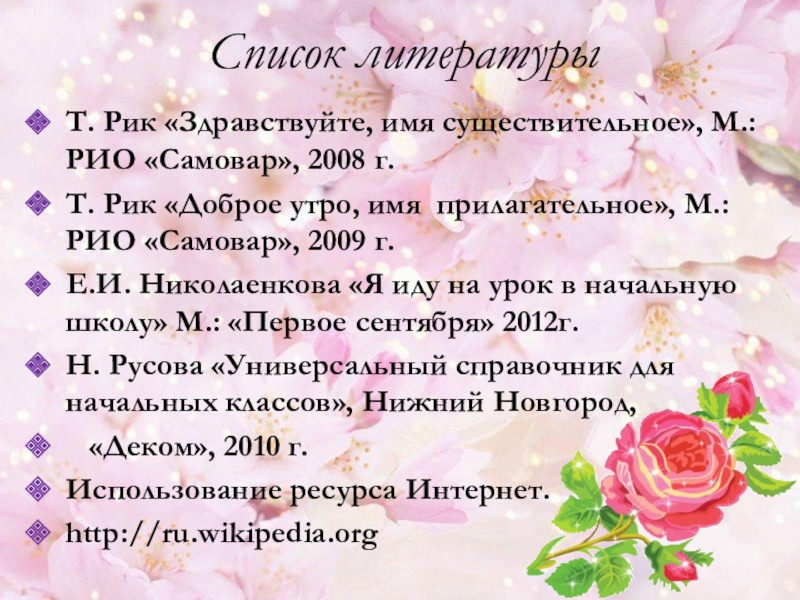 Т. Рик «Здравствуйте, имя существительное», М.:РИО «Самовар», 2008 г.