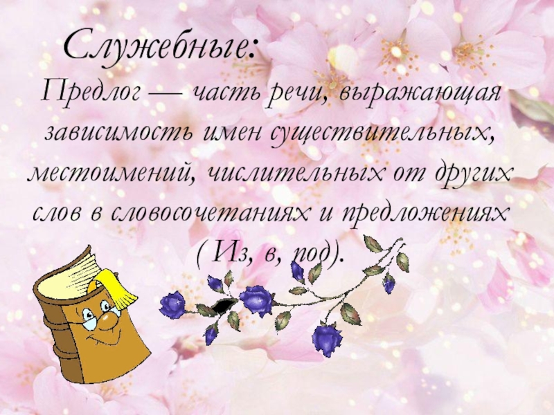 Предлог — часть речи, выражающая зависимость имен существительных, местоимений, числительных от
