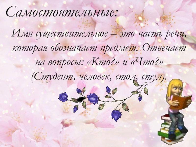Имя существительное – это часть речи, которая обозначает предмет. Отвечает на