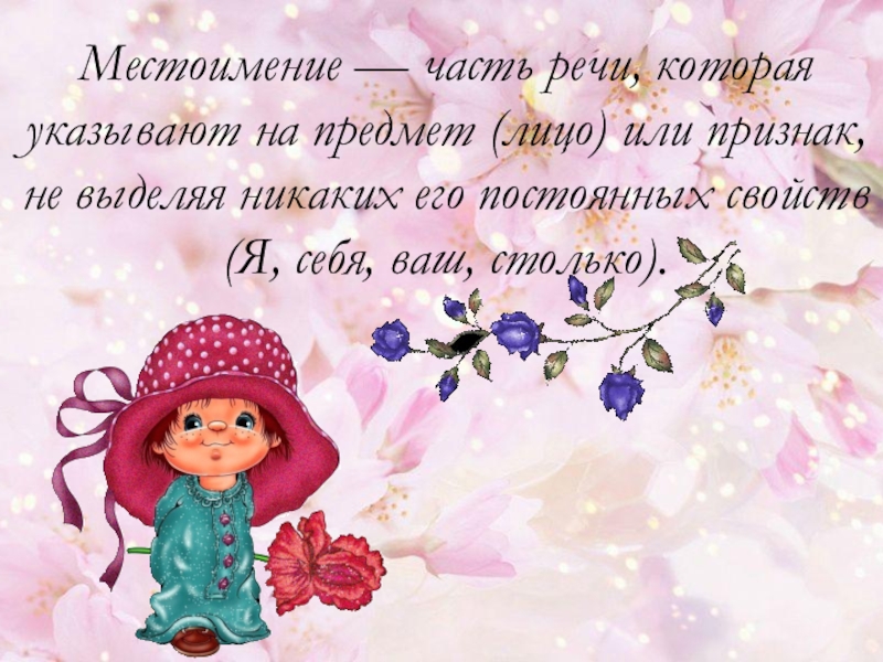 Слайд 7Местоимение — часть речи, которая указывают на предмет (лицо) или признак,