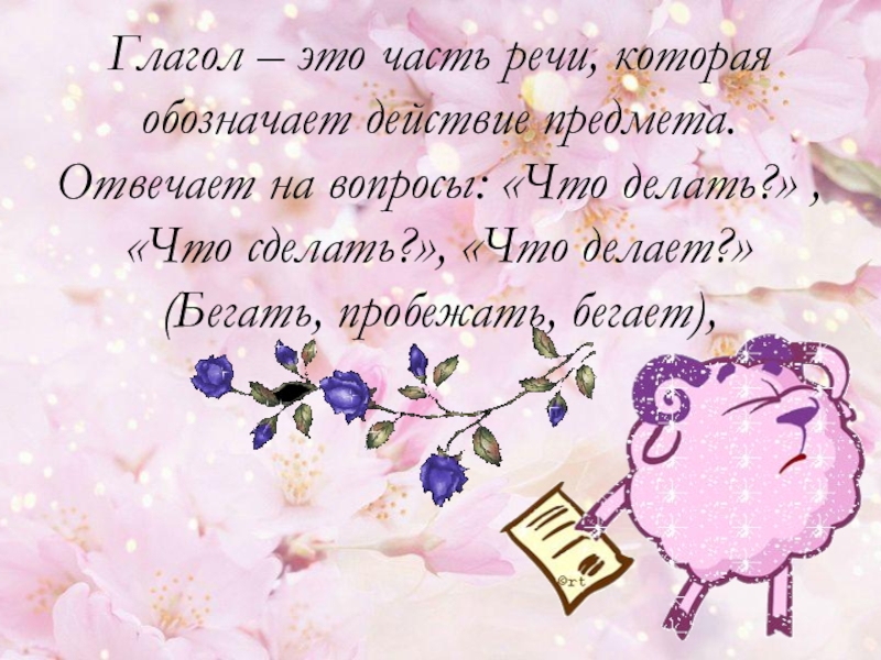 Слайд 5Глагол – это часть речи, которая обозначает действие предмета.