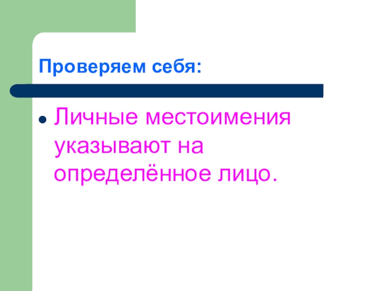 Проверяем себя:Личные местоимения указывают на определённое лицо.