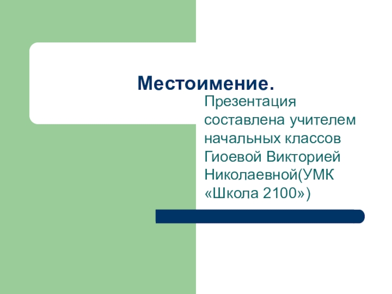 Презентация составлена учителем начальных классов Гиоевой Викторией Николаевной(УМК «Школа 2100»)Местоимение.