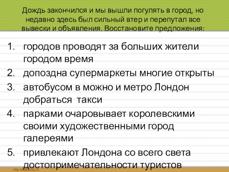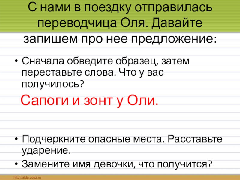 Сначала обведите образец, затем переставьте слова. Что у вас получилось?