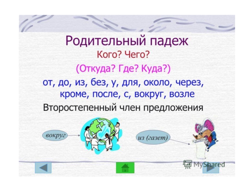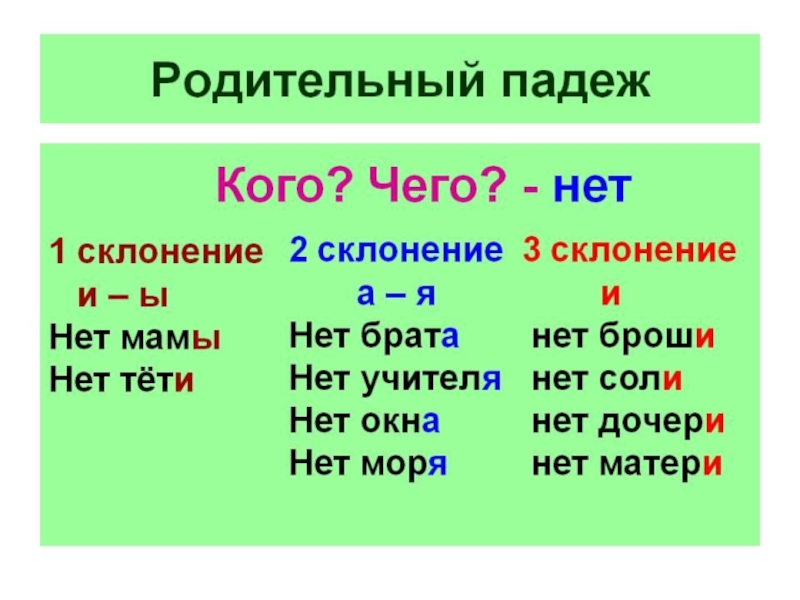Презентация, доклад по русскому языку на тему Родительный падеж в именах существительных 1,2,3 склонений