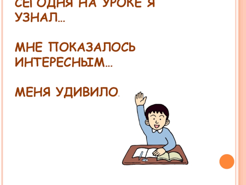 СЕГОДНЯ НА УРОКЕ Я УЗНАЛ…  МНЕ ПОКАЗАЛОСЬ ИНТЕРЕСНЫМ…  МЕНЯ УДИВИЛО…
