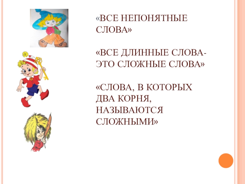 Слайд 11«ВСЕ НЕПОНЯТНЫЕ СЛОВА» «ВСЕ ДЛИННЫЕ СЛОВА- ЭТО СЛОЖНЫЕ СЛОВА» «СЛОВА, В КОТОРЫХ ДВА