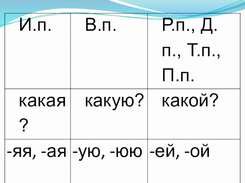 Презентация, доклад по русскому языку на тему Склонение имён прилагательных женского рода в единственном числе