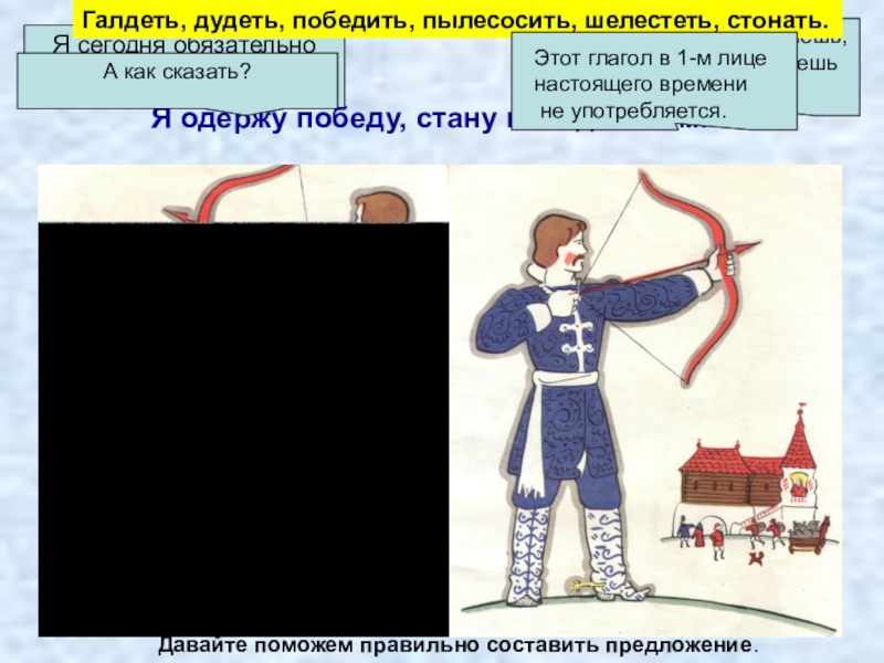 Галдеть, дудеть, победить, пылесосить, шелестеть, стонать.