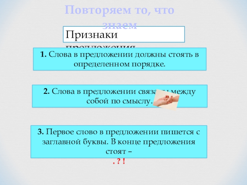 3. Первое слово в предложении пишется с заглавной буквы. В конце предложения стоят –