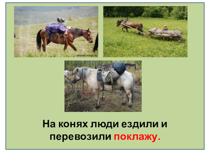 Слайд 3На конях люди ездили и перевозили поклажу.