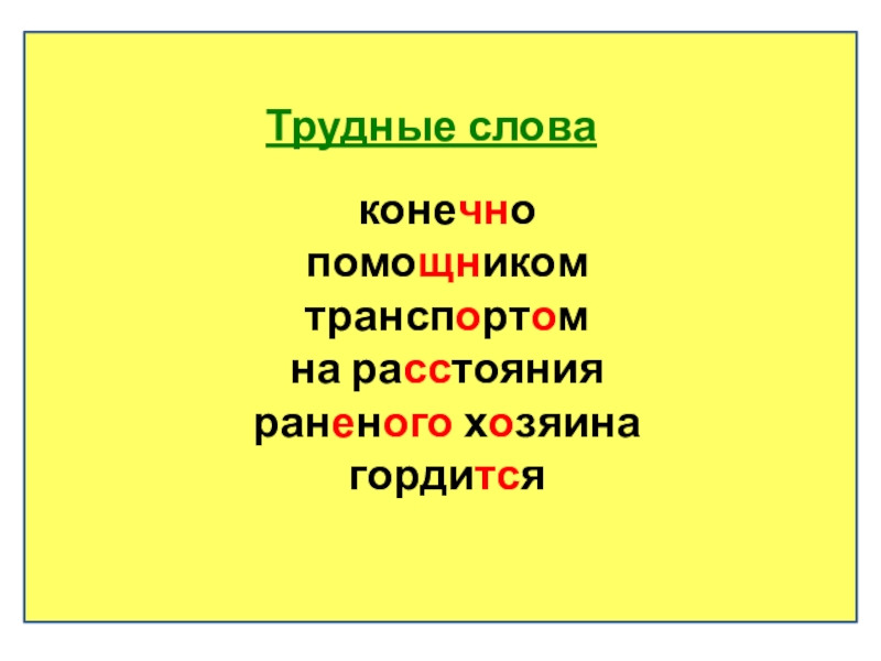 конечнопомощникомтранспортомна расстоянияраненого хозяинагордится   Трудные слова