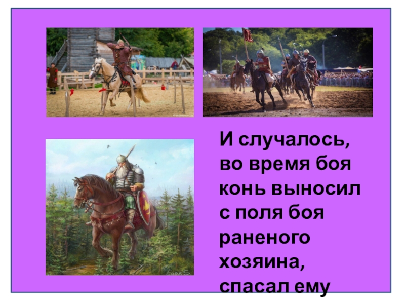И случалось, во время боя конь выносил с поля боя раненого хозяина, спасал ему жизнь.