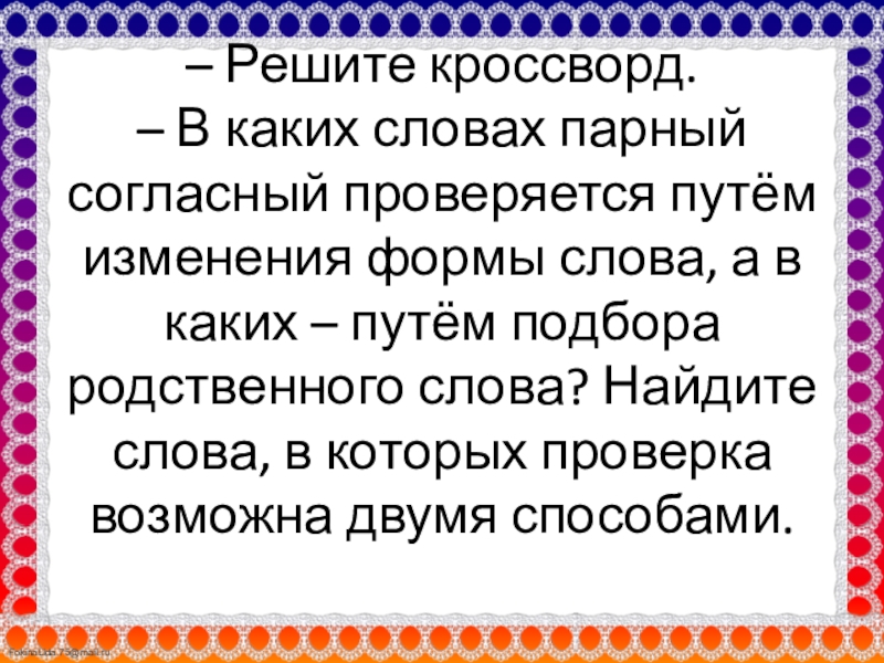 изменения формы слова, а в каких – путём подбора родственного слова? Найдите слова, в которых проверка возможна двумя способами.