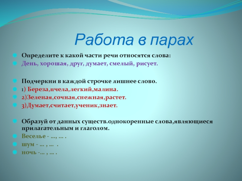 Образуй от данных существ.однокоренные слова,являющиеся прилагательным и глаголом.