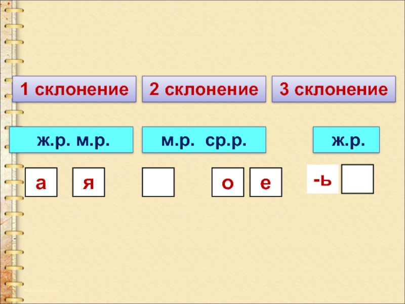 1 склонение2 склонение3 склонение ж.р. м.р.аям.р. ср.р.ео ж.р.-ь
