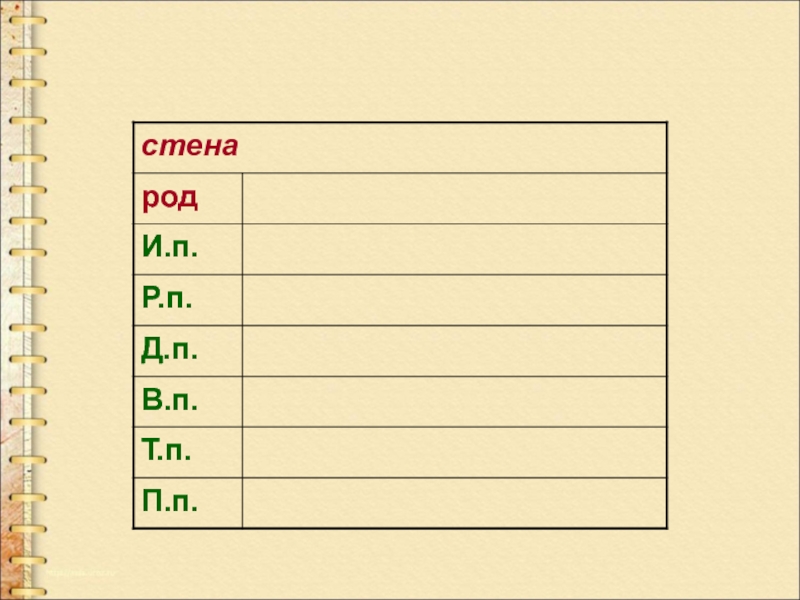 Развитие умений определять склонение имен существительных, обобщать материал таблицы.