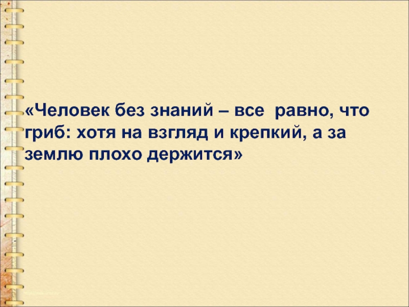 «Человек без знаний – все равно, что гриб: хотя на взгляд и крепкий, а за землю плохо