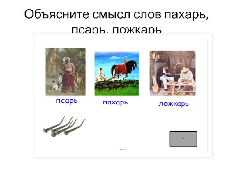 Слайд 5Объясните смысл слов пахарь, псарь, ложкарь