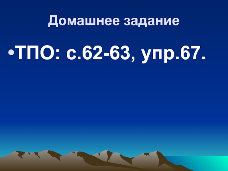 Домашнее заданиеТПО: с.62-63, упр.67.
