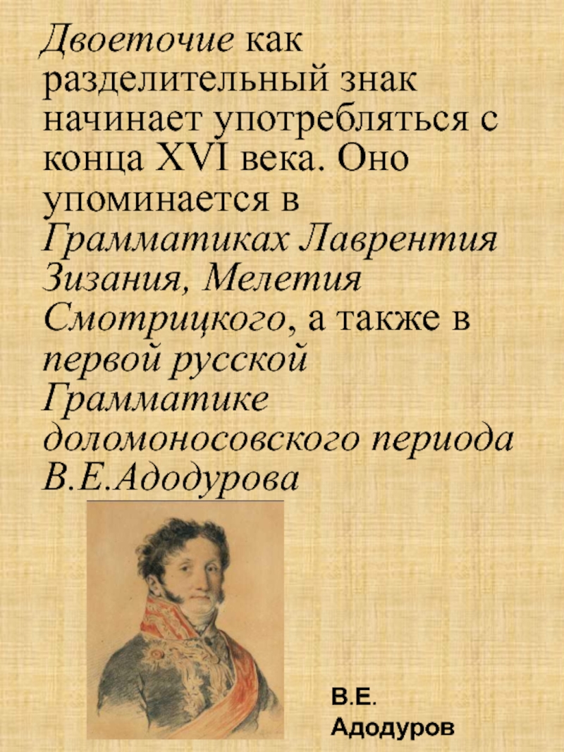 Слайд 13Двоеточие как разделительный знак начинает употребляться с конца XVI века. Оно