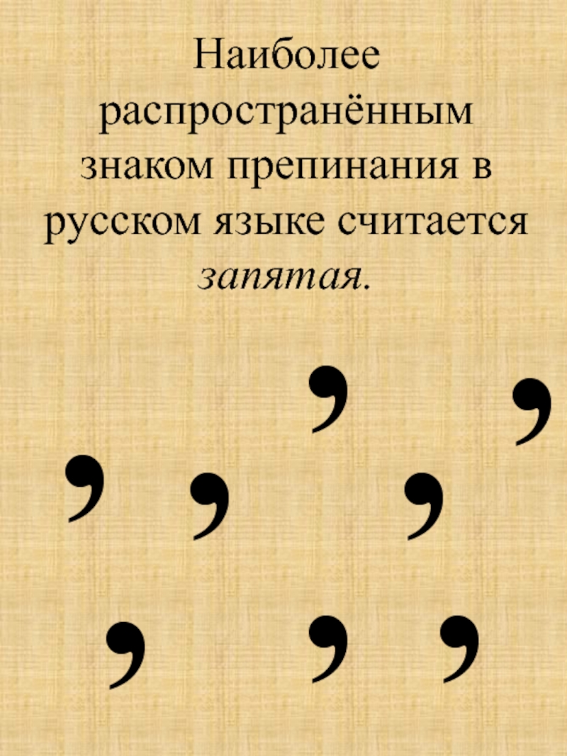 Слайд 11Наиболее распространённым знаком препинания в русском языке считается запятая.