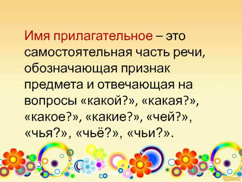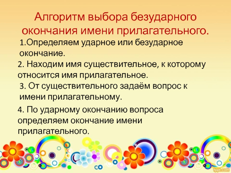 4. По ударному окончанию вопроса определяем окончание имени прилагательного.