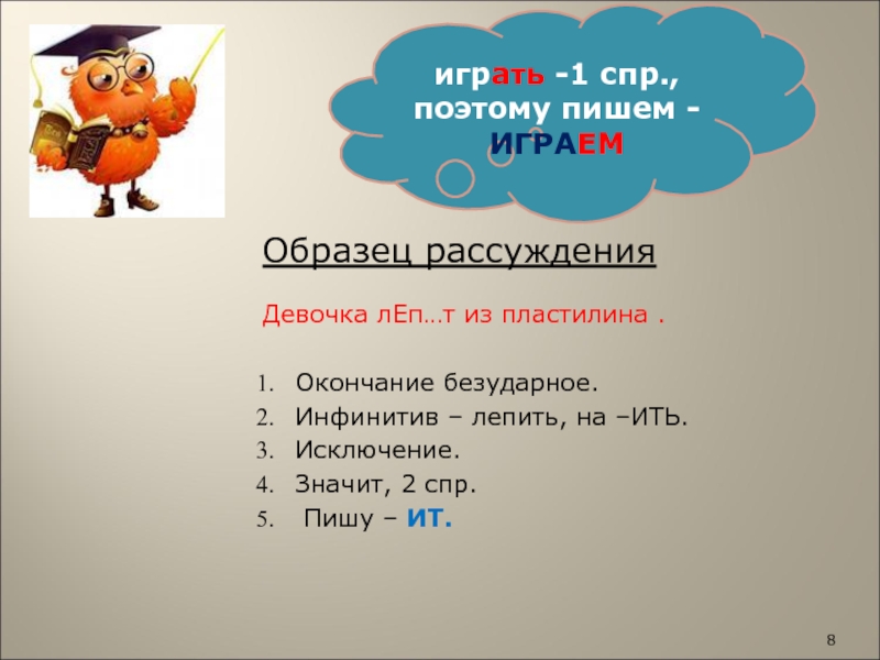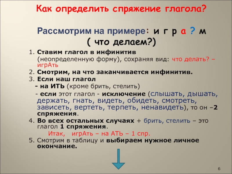 (неопределенную форму), сохраняя вид: что делать? –игрАть