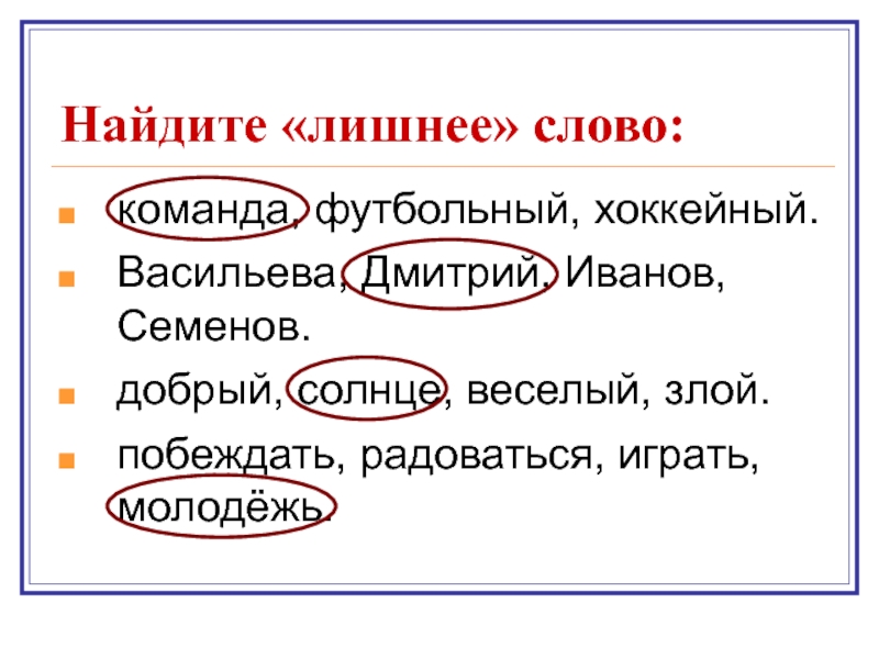 Найдите «лишнее» слово:
