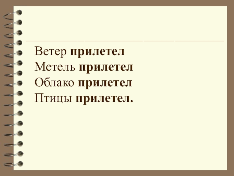 Двадцать второе апреля.Ветер прилетелМетель прилетелОблако прилетелПтицы прилетел. ассная работа.