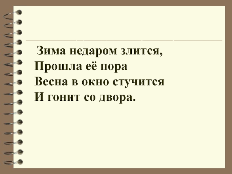 Двадцать второе апреля. Зима недаром злится, Прошла её пораВесна в окно