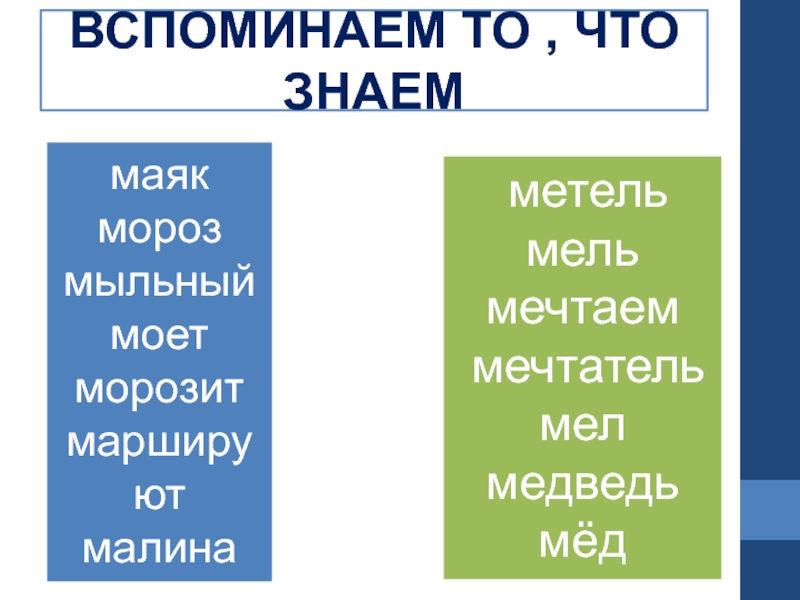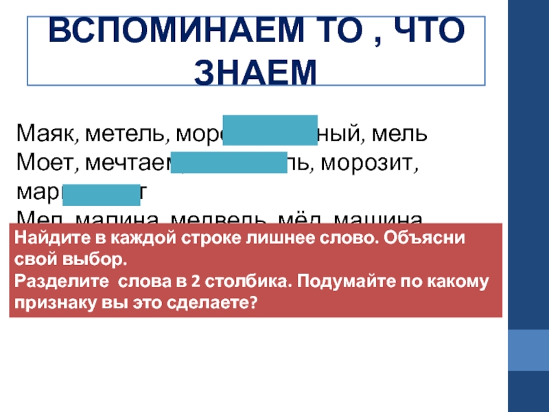 Разделите слова в 2 столбика. Подумайте по какому признаку вы это сделаете?