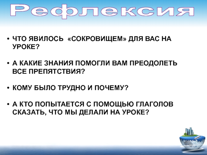 Это сайт презентаций, где можно хранить и обмениваться своими презентациями, докладами, проектами, шаблонами в формате PowerPoint с другими пользователями. Мы помогаем школьникам, студентам, учителям, преподавателям хранить и обмениваться учебными материалами.
