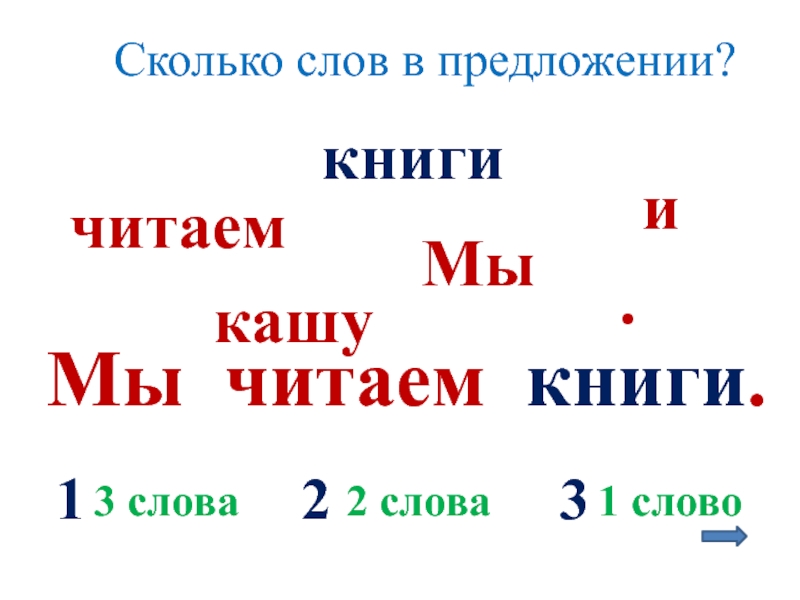 Сколько слов в предложении?Мыкашуичитаемкниги.Мы читаем книги.1233 слова2 слова1 слово