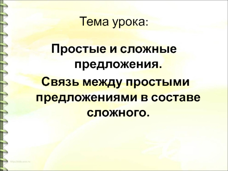 Тема урока:Простые и сложные предложения. Связь между простыми предложениями в составе сложного.