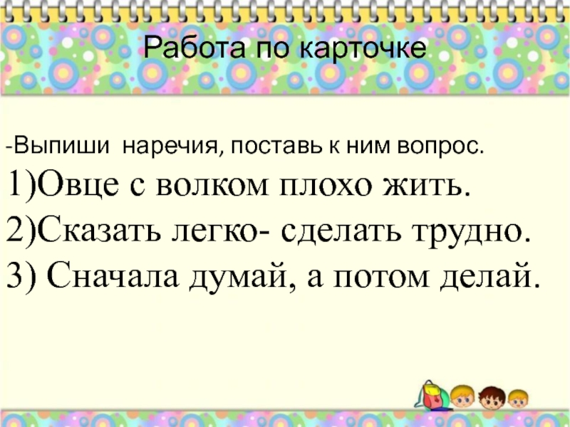Работа по карточке