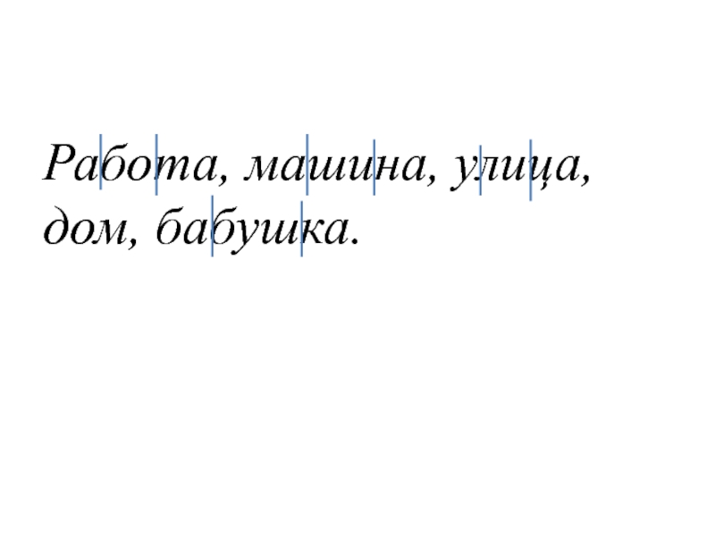 Слайд 4Работа, машина, улица, дом, бабушка.