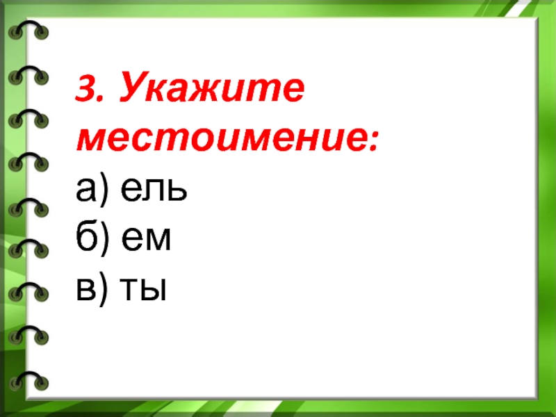 3. Укажите местоимение:  а) ель б) ем в) ты