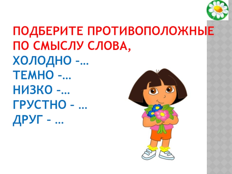 Слайд 13Подберите противоположные по смыслу слова,