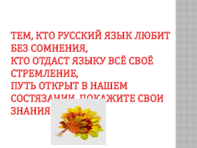Слайд 3Тем, кто русский язык любит без сомнения,