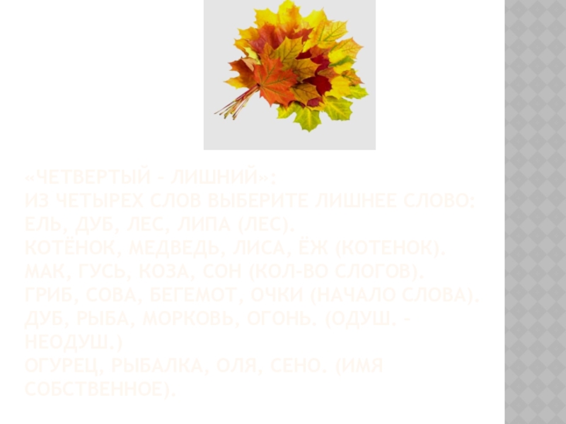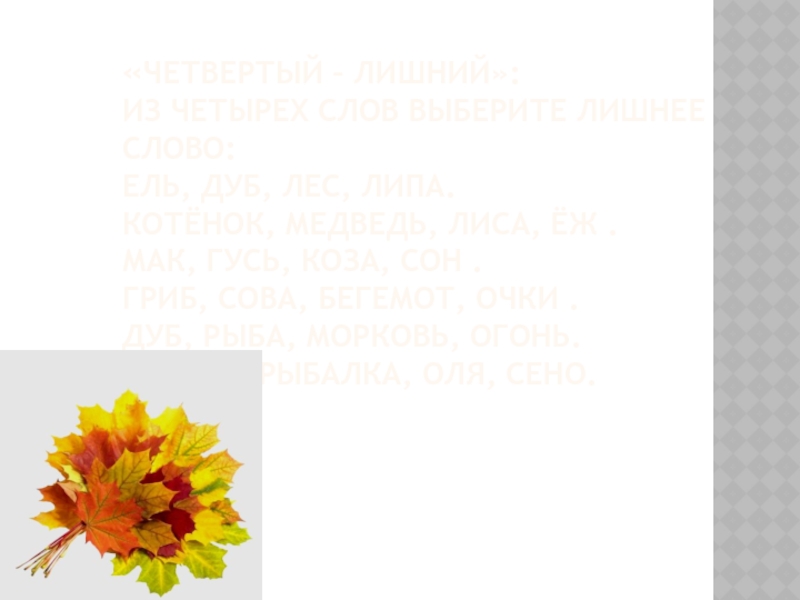Слайд 8«Четвертый – лишний»: