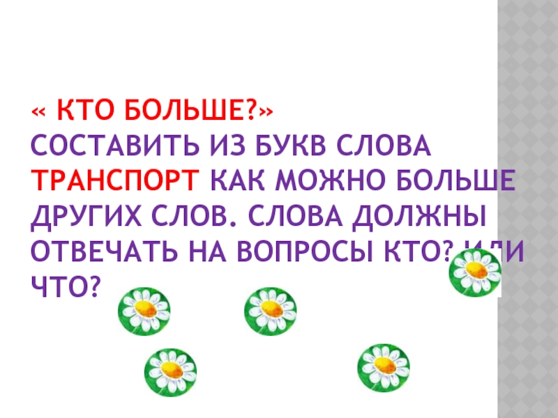 слов. Слова должны отвечать на вопросы кто? или что?