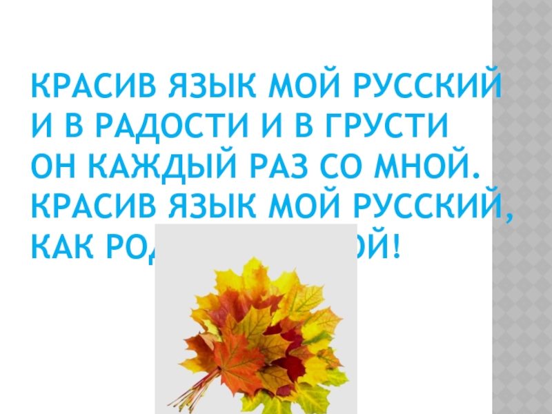 Слайд 4Красив язык мой русский
