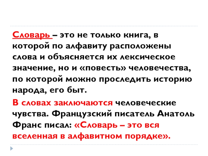 Совокупность слов какого-нибудь языка, а также слов, употреблённых в каком-либо произведении.)