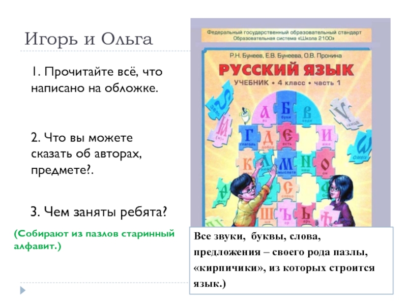 Все звуки, буквы, слова, предложения – своего рода пазлы, «кирпичики», из которых строится язык.)