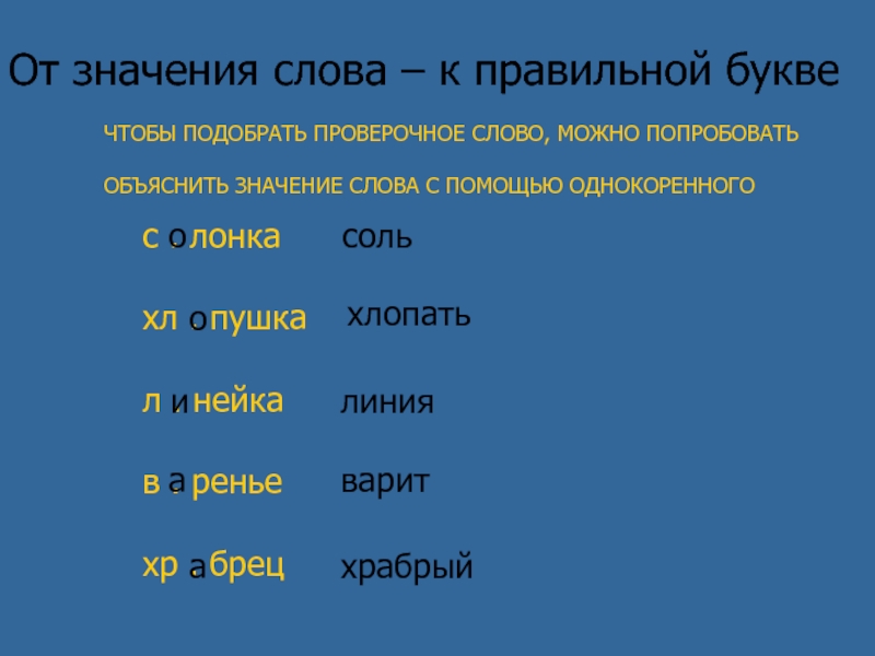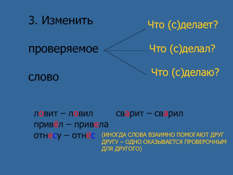 ЧТОБЫ ПОДОБРАТЬ ПРОВЕРОЧНОЕ СЛОВО, МОЖНО ПОПРОБОВАТЬ